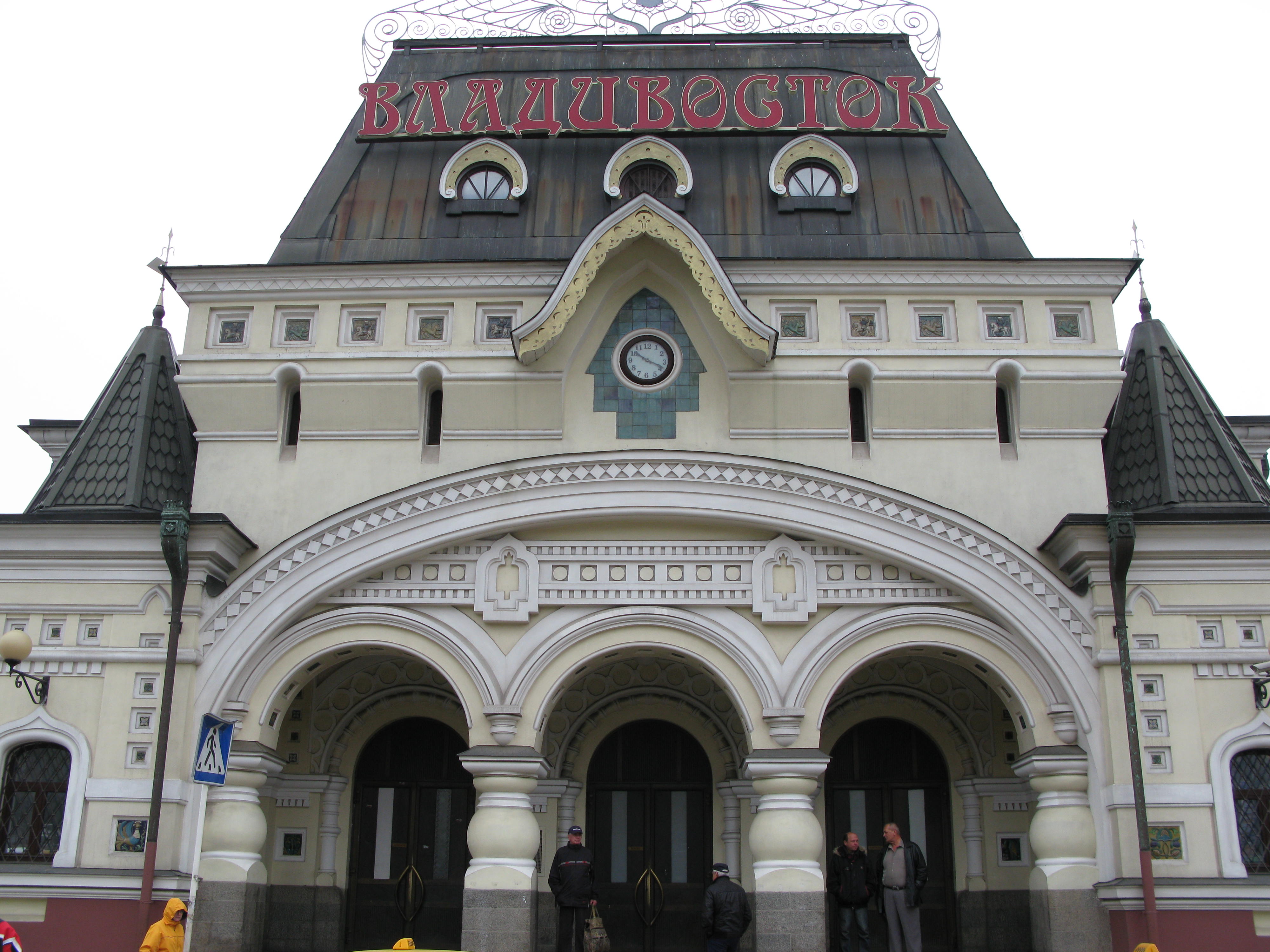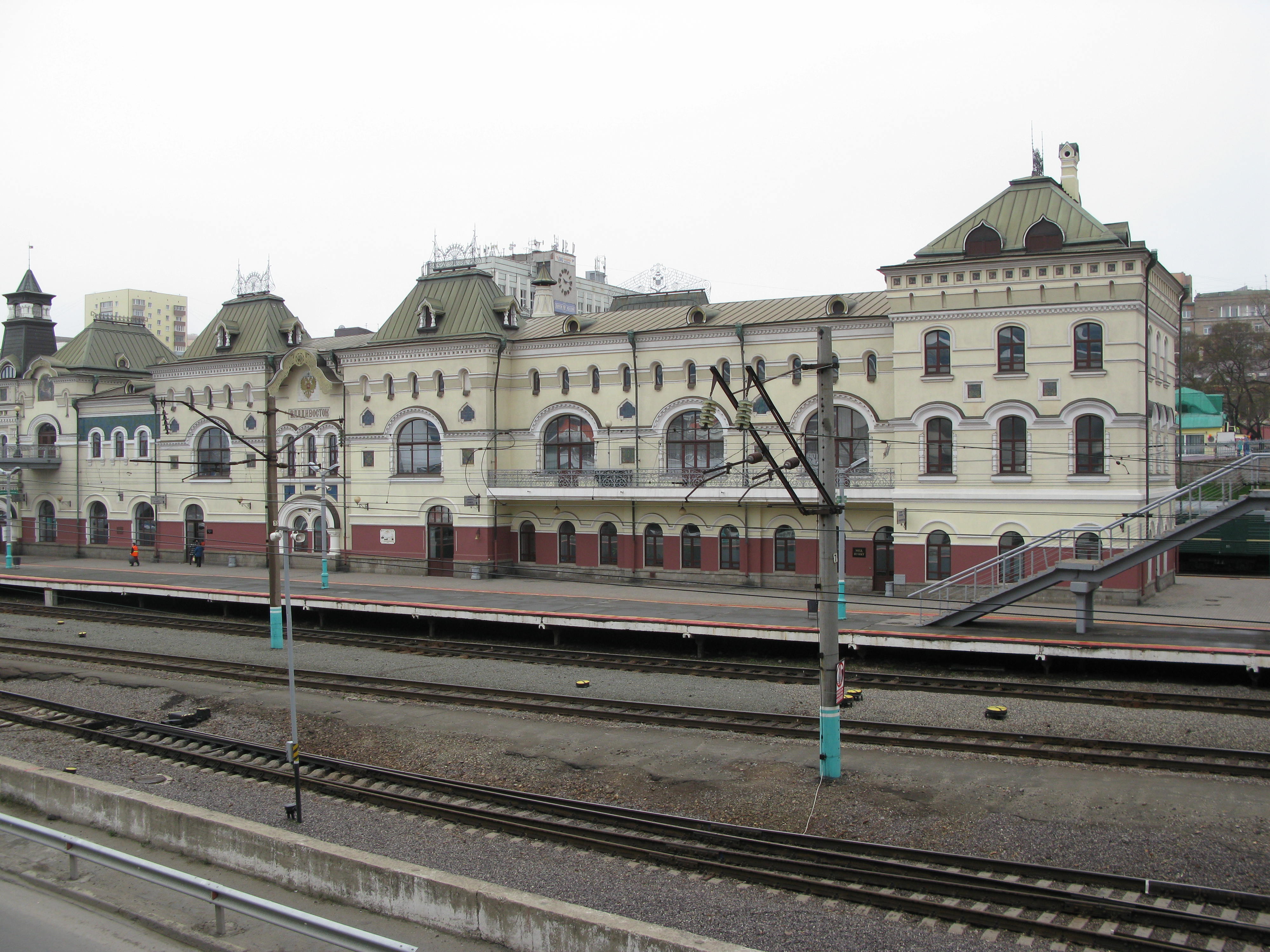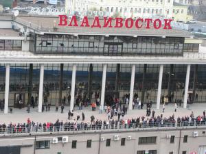 Unlike other ports where you need a shuttle bus to take you downtown, you get directly off the ship in the heart of Vladivostok and you’re there. I made for the railway station right away – across a bridge from which there were steps to various platforms. The outside of the station is beautiful. Tsar Nicholas, before he ascended the Russian throne, went on a trip in 1891 and laid the foundation stone for this station, designed to link the far east of the nation with the rest of Russia through the rail network.