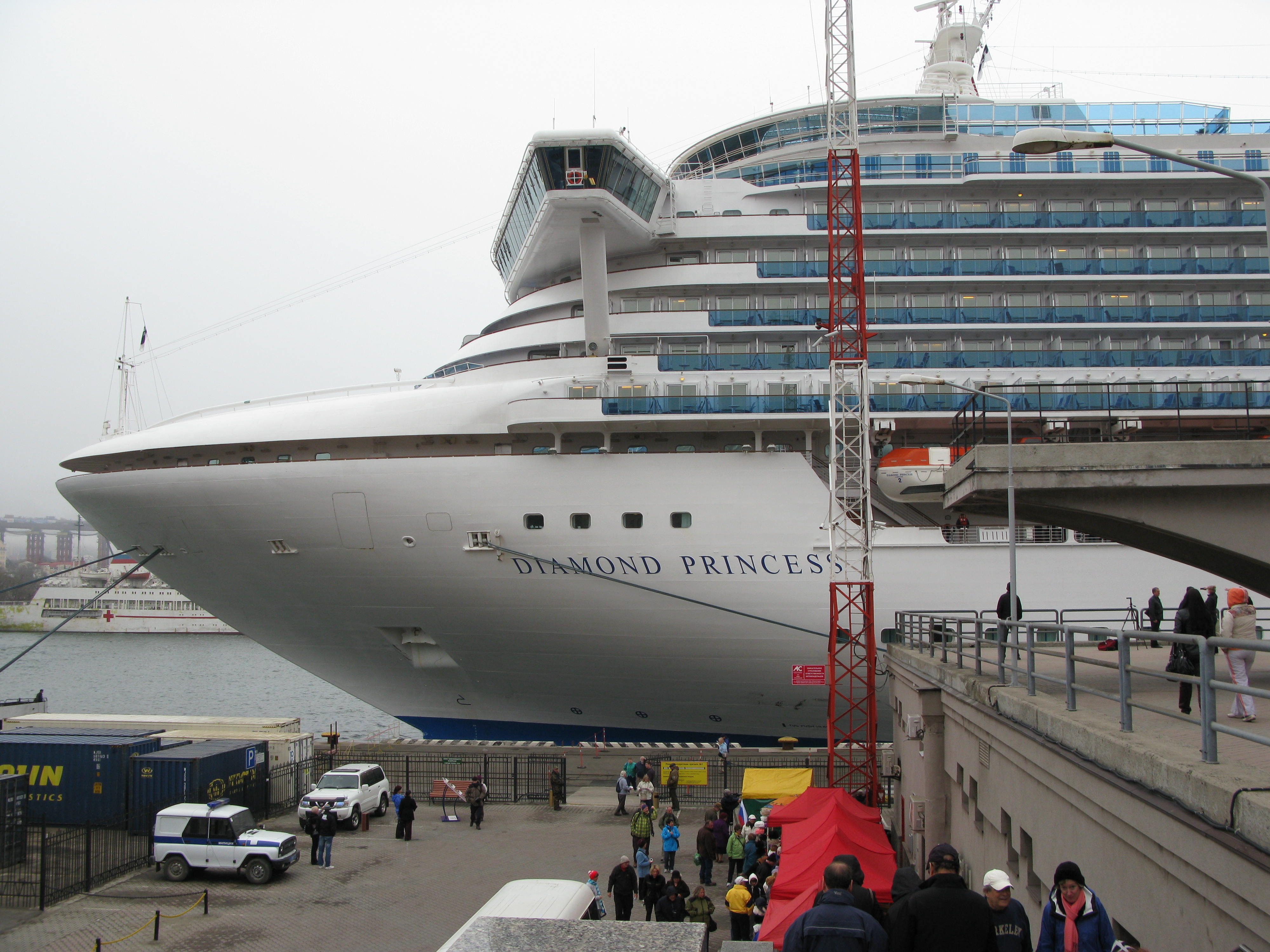 I was actually reading up in the conservatory as it was bitterly cold outside. But when I saw two of the crew waving to people on the ground curiosity got the better of me and I went outside on deck to see what girls they had in this port! I was amazed to see the people lining the harbour as we moved away, waving and taking photos. Vladivostok is not a place I’d want to live, because of its isolation and general greyness and its long history of communist oppression and deprivation. This ship calls in for a day just twice a year, so it’s quite an event. It’s yet another thing on this trip which has highlighted how fortunate we are to live where we do, in the West, with the freedom we take for granted.