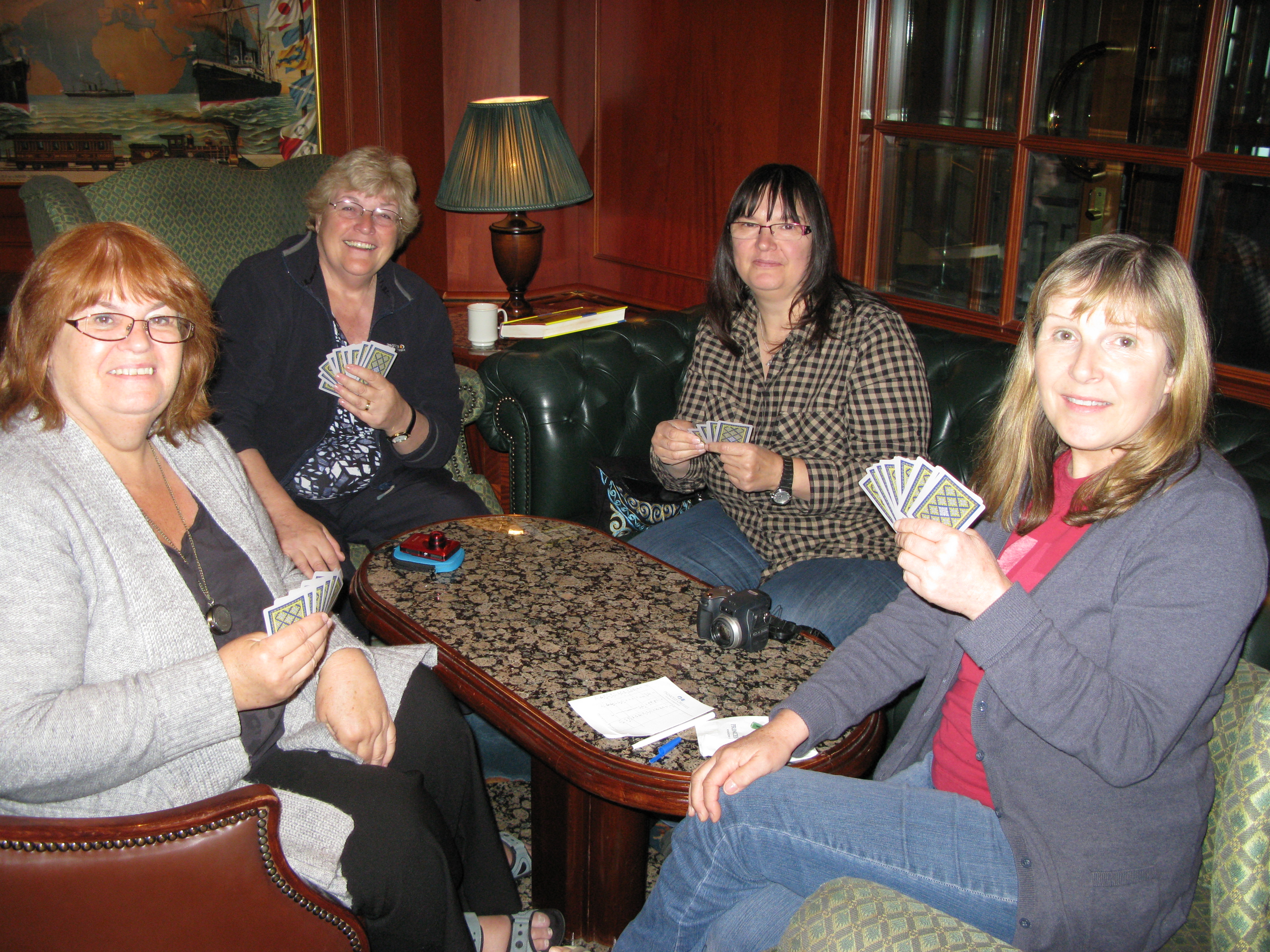 We had a farewell dinner tonight for Sandra and Tony, who will be missed. Sandra won 11 games of Arsehole in a row this afternoon, and even after losing another was crowned Finale Champion and had a cocktail bought for her by the abject loser. Not me, by the way. Now that she is departing at Anchorage to fly off to Hawaii (while we cope with the Green Tortoise, sleeping like sardines, no showers and camping at Chicken) we will maybe have a chance of winning. We may bump into her and Tony in Vancouver and New York, so I have my Terracotta Warrior playing cards at the ready in my handbag. Aces at dawn, don’t mess with me.