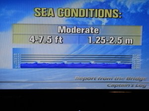 It’s 01.36, the ship is lurching madly and I’m sliding off the toilet seat so am going back to bed.