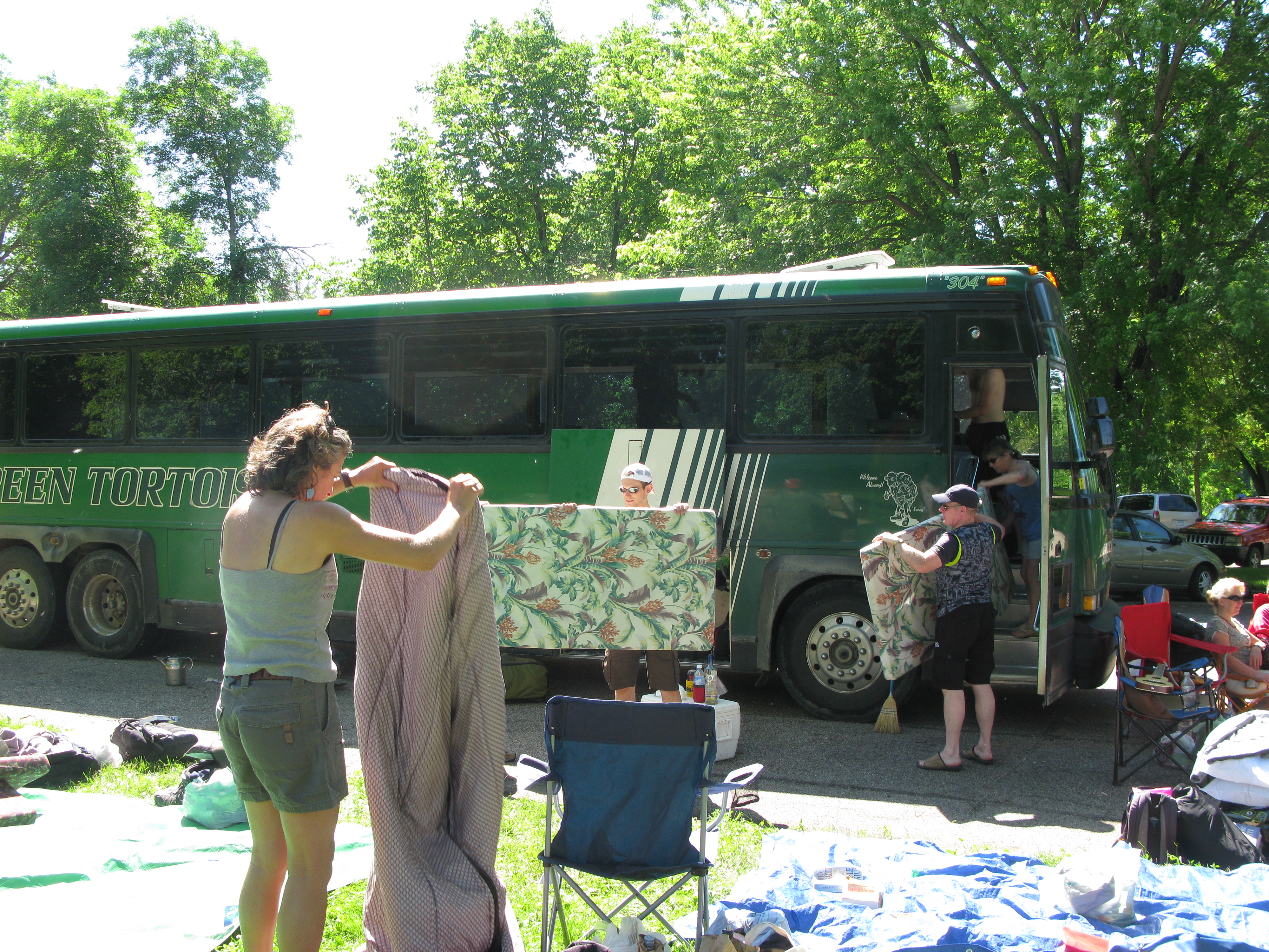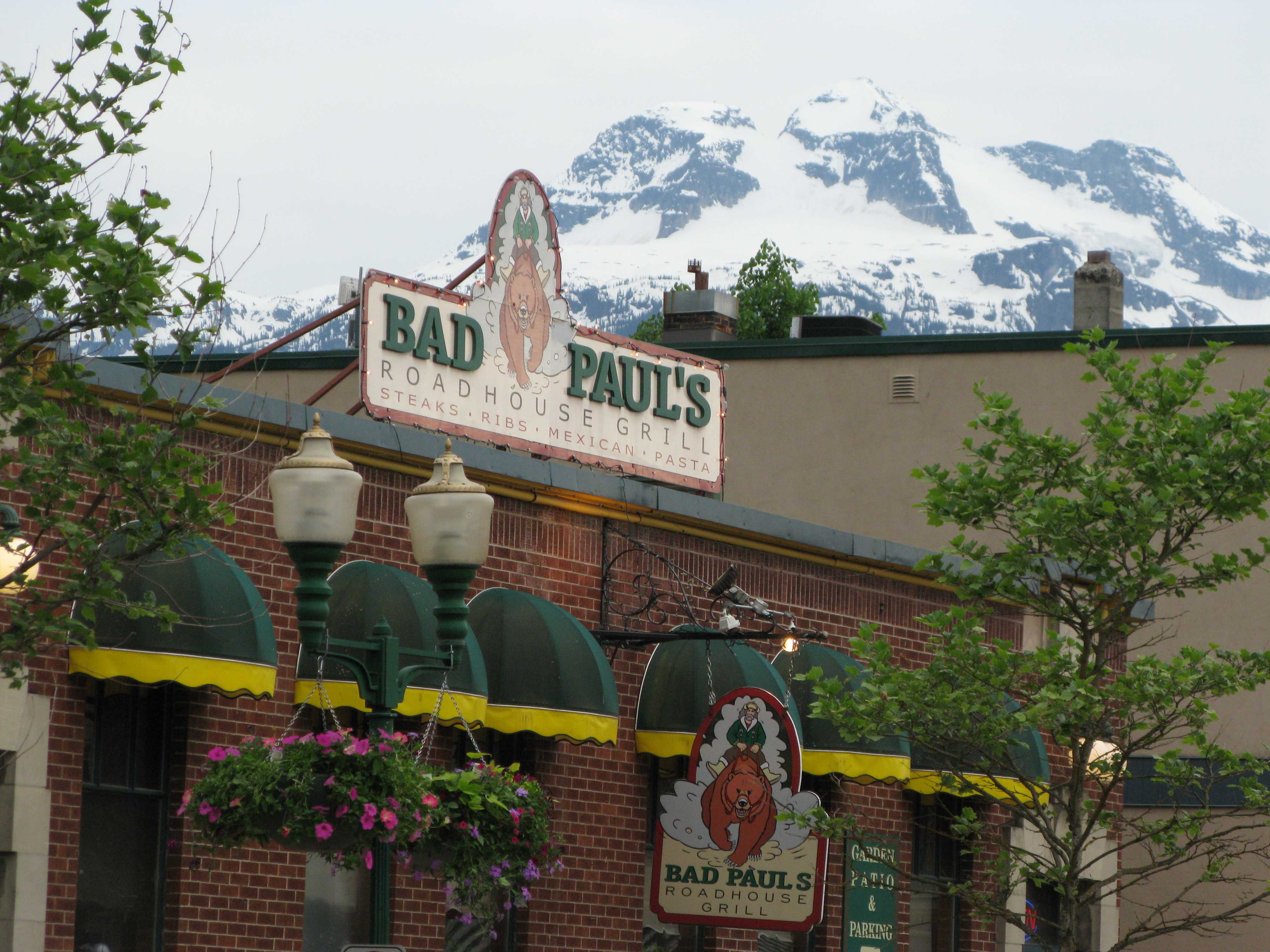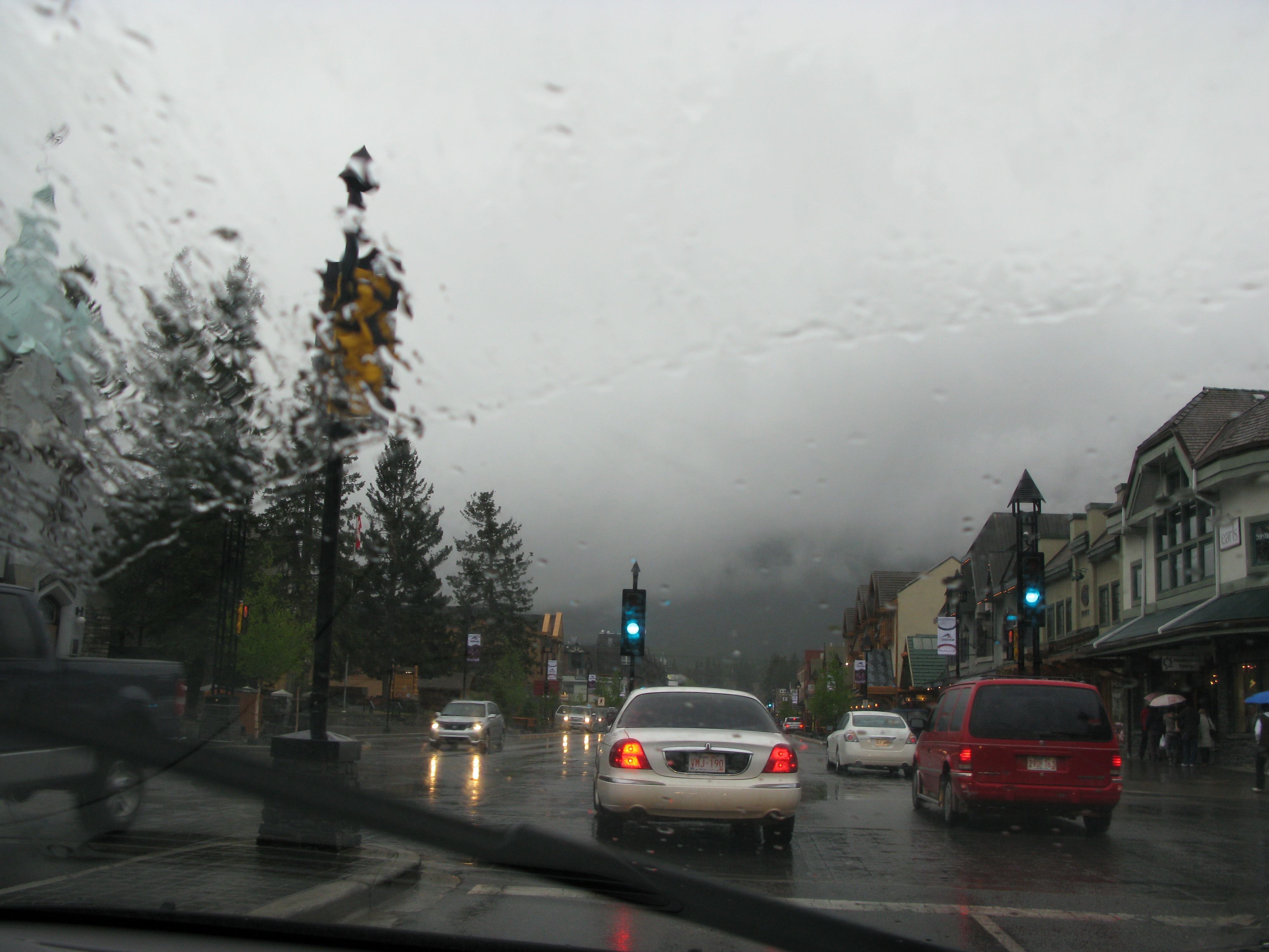 A very quiet place… not much life about it and certainly not many people around. Nice cafes and in the evening a nice hotel bar where we met a girl who had backpacked to the region, and stayed when she found work. But I think she was planning to move on too. When we arrived, we hung our wet tents on lines which we stretched between trees in the car park. Littering this lovely town! We took the remaining ones down and stowed them away when we braved it back to the bus, to step gingerly over sleeping bodies to the spots we’d chosen for the night. Sully slept in his little box until about 2am, then started the bus up and set off for Vancouver.