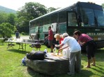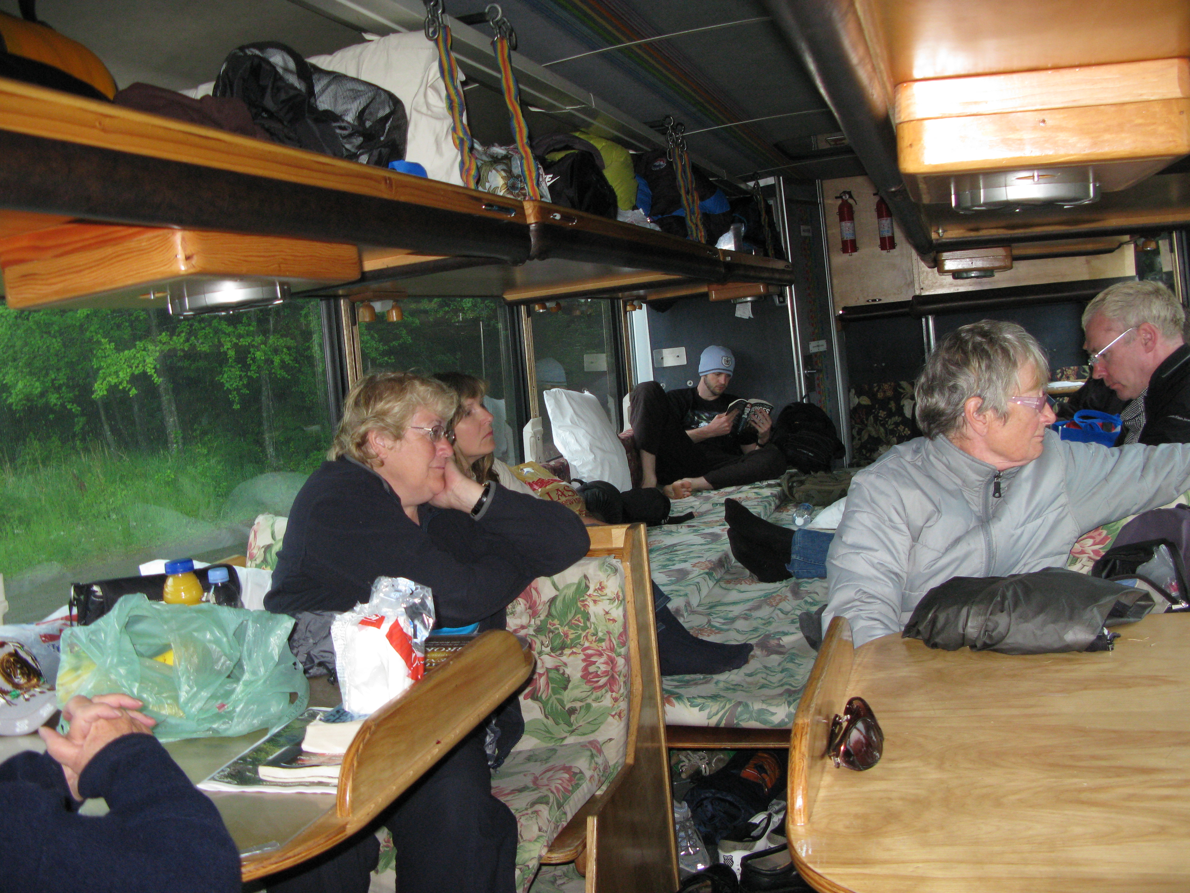 We’re all looking forward to a night in a hostel, and the opportunity to get our clothes in a washing machine. The little things, like fresh smelling clothes, take on huge importance at times like this, and we have to remind ourselves that this is not an endurance test, but a holiday(!), or rather, an adventure trip. We take each day as it comes; on the bus at the moment there are people on laptops, playing cat’s cradle, reading, sleeping, listening to their own music, playing cards, gazing out of windows. Waiting for Vancouver.
