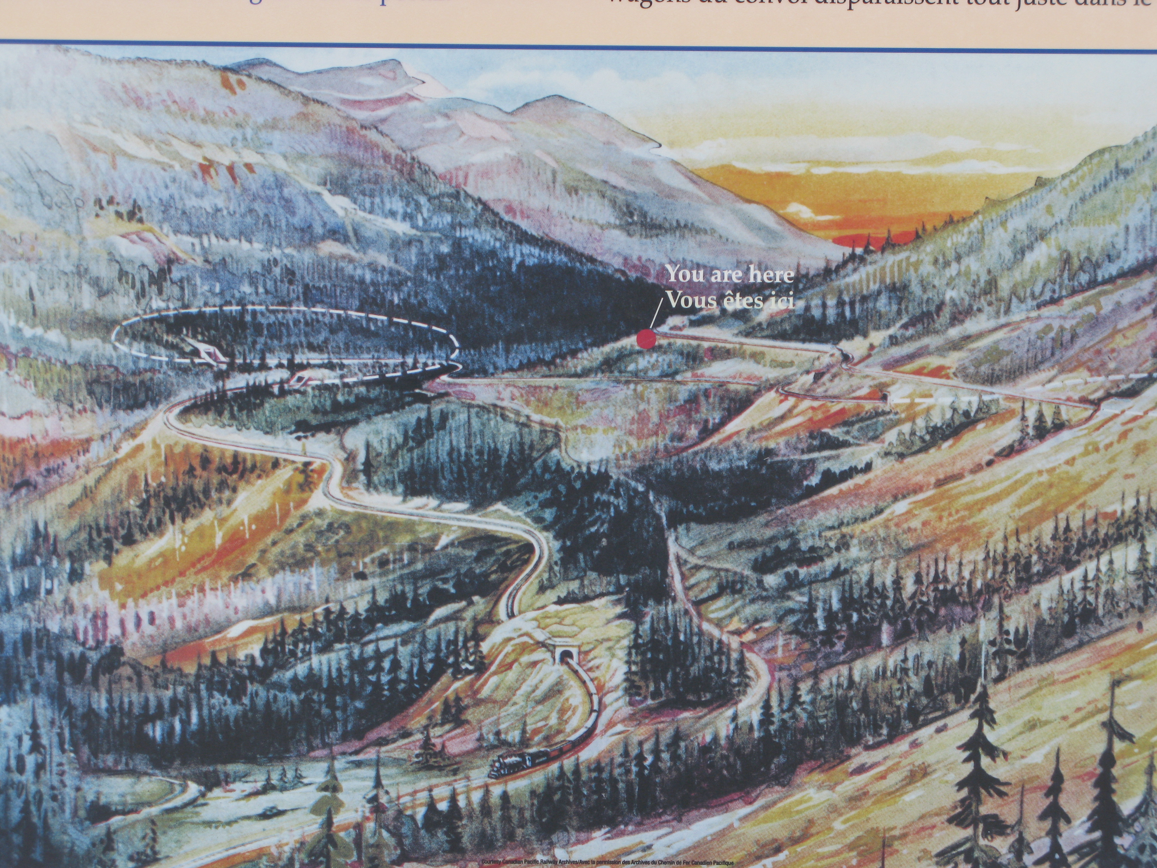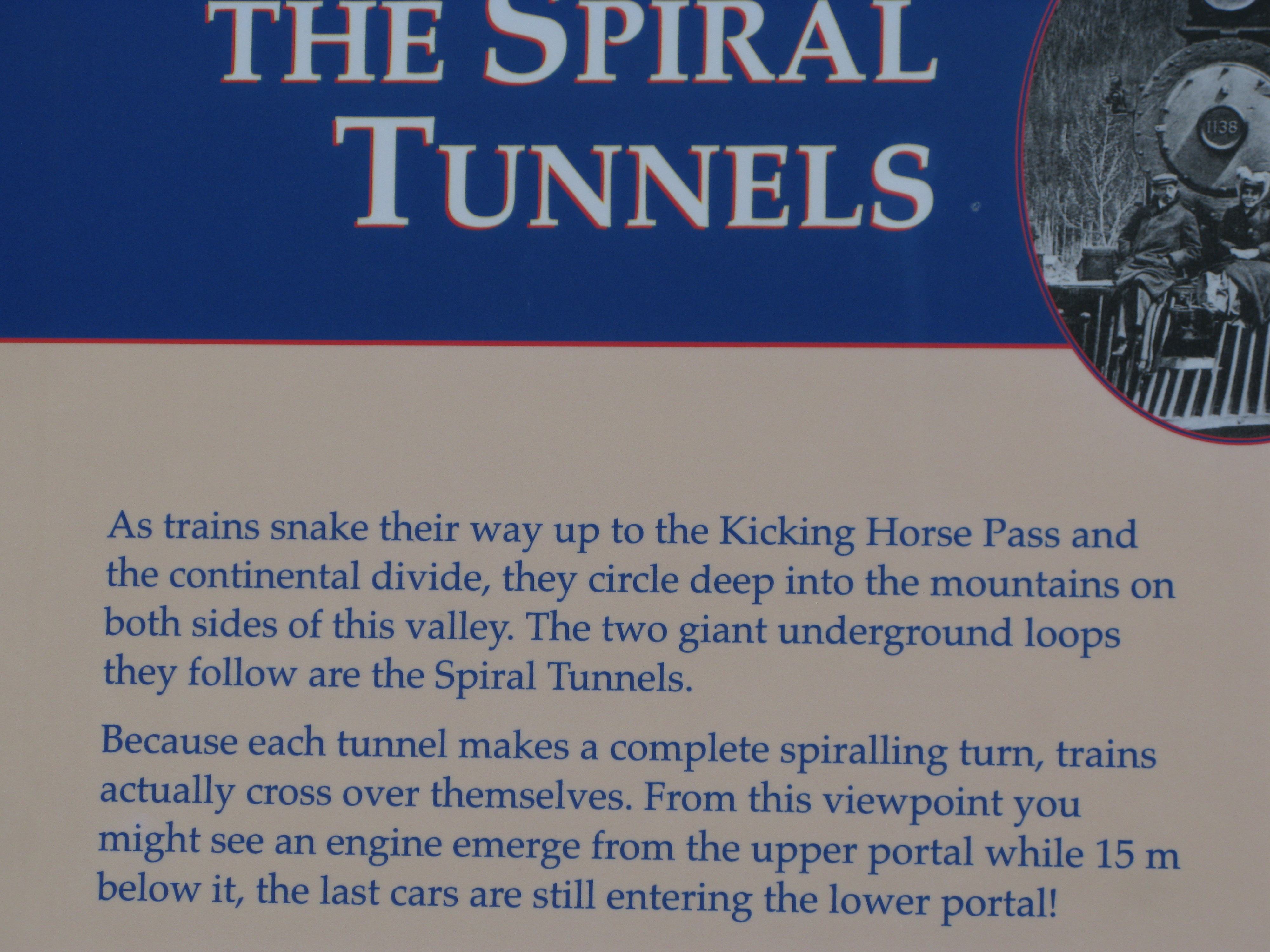We made a couple of stops on the way after that, one of them being way up in the Yoho National Park at Spiral Tunnels, the steepest part of the Canadian-Pacific railroad, which must have been a nightmare to build, but a great improvement on the steep gradient that trains had to navigate prior to 1909 when the tunnels were made. Before 1909, steam trains had to laboriously climb up in one direction, but descending was far more treacherous with trains running away and littering the countryside with their wrecks as they negotiated ‘Big Hill’. Sometime in the 1880s, this whole mountain area was opened up by the railroad and tourists burst into the mountains which they previously couldn’t access very easily.