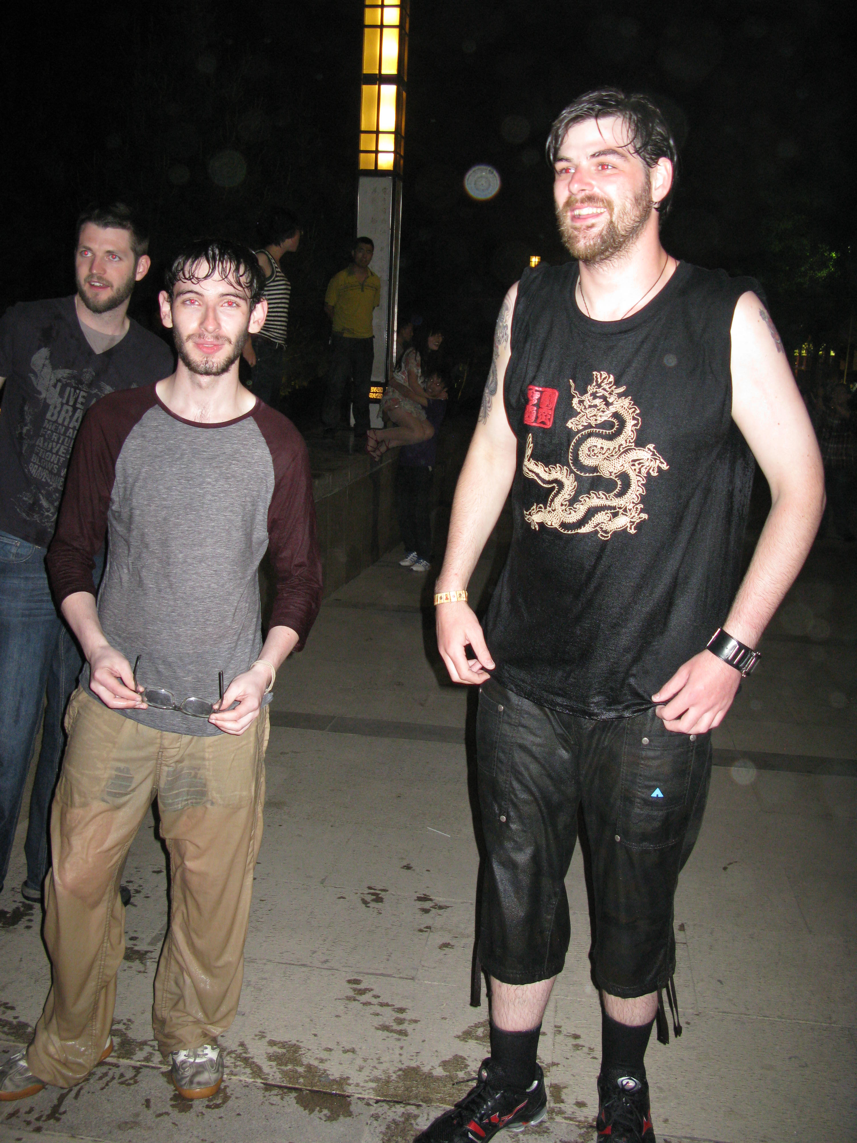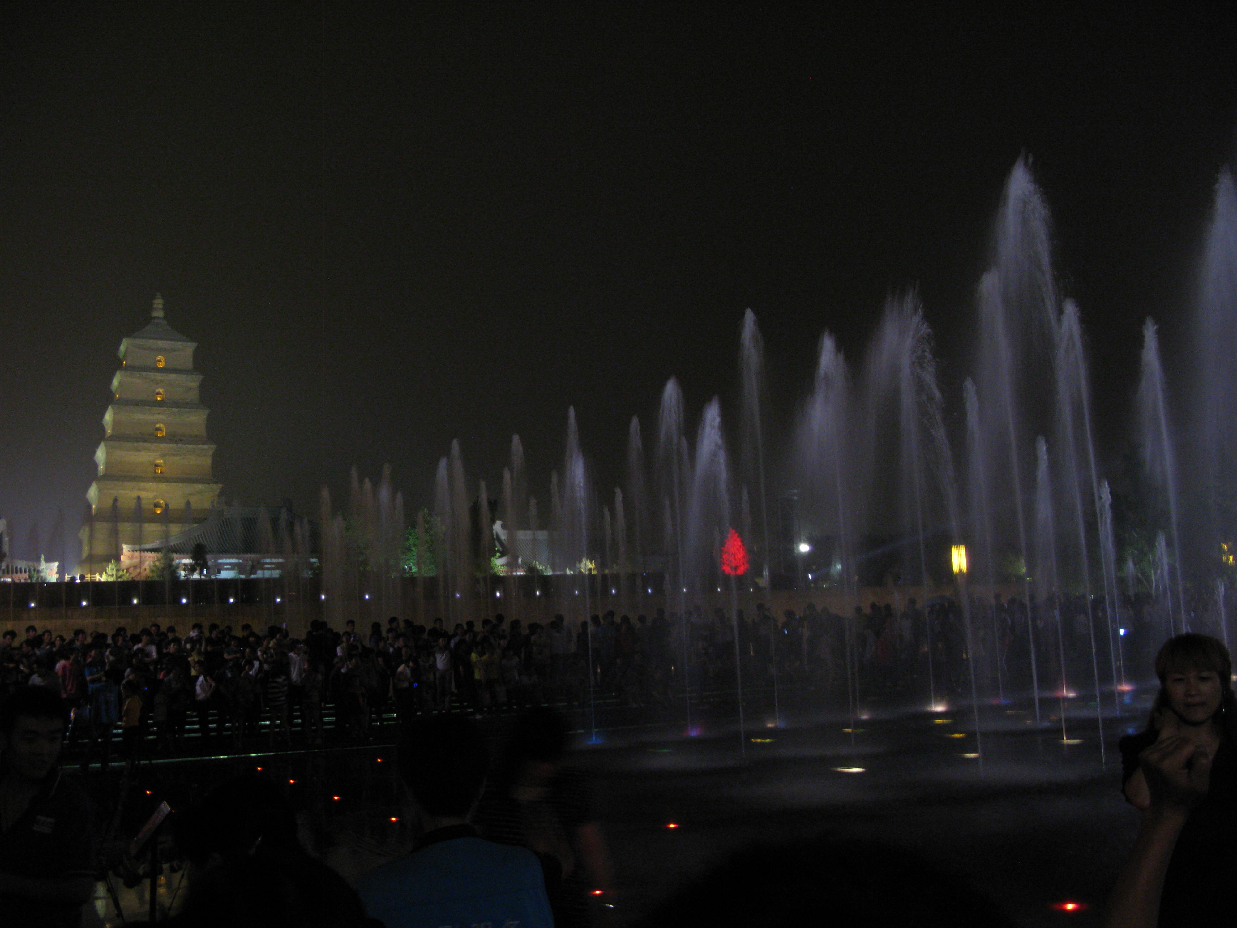 The next day I took a day off, as I really didn’t fancy wearing the mask and walking around the city wall with some of the others in the group. So I relaxed with laptop, book and the Chinese TV commentary of the William – Kate wedding in London. Then I was joined by a few others and we found a local English language news channel and watched highlights on that. Not entirely accurate, actually, The presenter kept saying ‘Diana’ instead of Kate, and when explaining who the guests were, made some of them relatives of the Queen. But a good laugh! Our guide An sang us two songs on the coach that evening – one of them a love song in Chinese dedicated to William and Kate. We went out that evening to a light and fountain display in honour of Labour Day. The festivities run over three days and the Chinese know how to enjoy themselves! Splashing around in the fountains, madly waving umbrellas and squirting each other. Andy and Pete followed suit, of course.